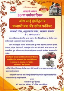 उद्यमबाग, बेळगाव येथील कलाश्री उद्योग समूहाचा 30 वा वर्धापन दिन आणि मेघा लकी ड्रॉ रविवार, 16 नोव्हेंबर 2025 रोजी सकाळी 11.30 वाजता जल्लोषात साजरा होणार आहे. यावेळी चौथ्या योजनेचा मेगा ड्रॉ काढण्यात येणार असून भाग्यवान विजेत्याला कार किंवा रोख ₹2 लाख मिळणार आहेत, अशी माहिती चेअरमन प्रकाश डोळेकर यांनी दिली.
