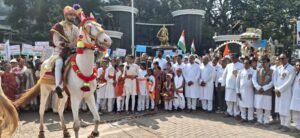 वेषात घोड्यावर बसलेले युवक लोकांचे लक्ष वेधून घेत होते.या रॅलीमध्ये महिलांची उपस्थिती लक्षणीय होती.तसेच अनेक आजी माजी सैनिक उपस्थित होते.
